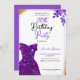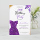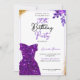 Mit zarten, violetten Aquarellblumen, glänzenden Goldkonfetti, einem einfachen Rahmen und einer lila Glitzer-Kleidung Silhouette, bringt dieses Design eine Touch von Charme und Festlichkeit zu einer besonderen 90. Geburtstagsfeier.