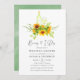 Trendy handgemalte Aquarell Sonnenblumen Wein Verkostung Party/Ehepaar Dusche/Hochzeitsdusche Probe Einladung mit schlauer grüner Aquarellwäsche Hintergrund.