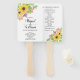 Gelbe Wasserfarben Sonnenblumen, Herbstlaube und Beeren Blumenkohl-Programm Hand Fan. Es zeigt einen wunderschönen Blumenstrauß mit grünen Blätter, Herbstblättern und Beeren.