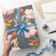 Aquarellblumenmuster von Hunden und Rose und Roter Geschenkpapier
