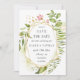 Eine elegante Save the Date-Karte mit wildem, grünem Blattwerk in Aquarell mit rosa Blume. Für eine erweiterte Anpassung dieses Designs, klicken Sie bitte auf den Button "Anpassen" oben! Matching-Elemente sind ebenfalls verfügbar.
