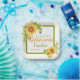 Eine Große Platte aus Party mit florgelb blühenden Aquarellen, eine Biene und eine dünne grüne Grenze . Die perfekte Tischdekoration aus Party für ein Party in der Rente. Personalisieren Sie mit einem Namen und Datum, um es extra zu machen. Alle Texte können bei Bedarf geändert werden, um das Element anzupassen.