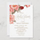 Schönes Aquarell Floral Peach Einladung mit Gold und Bordeaux. Es hat einen koordinierenden Hintergrund und macht die perfekte Babydusche-Einladung für Mama.