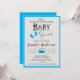 Diese Einladung mit hübschen Aquarellfarben-Blume enthält "BABY" in Worten und Babyfußspuren und Babyflaschen und enthält einen blauen Rahmen. Das Wort "Dusche" kann nur in der Farbe bearbeitet werden. Diese niedliche, schicke und elegante Babydusche lässt sich leicht mit Ihrem Text abstimmen. Sie können auch vorne und hinten eine Hintergrundfarbe hinzufügen.