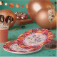 Die lila-Blume sind in Rot, Orange und Dunkelrot gehalten und mit grünen Blätter versehen. Die Teller sind ideal für eine Babydusche oder für jeden Anlass. PASSENDE Artikel in unserem Geschäft.
