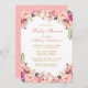 Elegante Watercolor Pink Blush Floral Gold Script Baby Einladungskarte