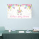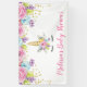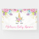 Sweet Einhorn Mädchen Duschbanner. Dieses niedliche Design verfügt über Aquarellfarben Rosa, lila und blaue Blumen, Einhorngesicht und Imitate Gold Glitzer Confetti.