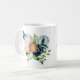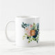 Navy blaue und blütige Wasserfarben Botanisches Bouquet mit schläfengrünem Blattwerk mit mit Monogramm goldfarbenem Kupfer-Quadrat, was ihr einen gürtelförmigen, personalisierten Mug macht. ++++++++ Einfach mit Namenssignatur und Monogramm-Namensinitialen anpassen.