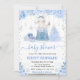 Elegantes Watercolor Floral Arctic Fox Design mit blauen Blume mit silbernen Schneeflocken, Konfetti und Streifen Hintergrund