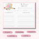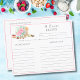 Die elegante Rezeptkarte mit handbemalten Aquarellfarben-Rose und einem charmanten Mixer umgeben von köstlichen Desserts.