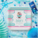 Dieses handbemalte Aquarelldesign mit einer reizenden Eisdiele, die mit einer Kirsche überzogen und von Keksen begleitet wird, verwandelt sich in eine reizvolle Party-Platte für eine Babydusche. Das lebendige, skurrile Kunstwerk vereint die Süße und Freude, ein neues Baby willkommen zu heißen, und macht es zu einer fantastischen Wahl für diesen Anlass. Diese Teller eignen sich ideal für Gäste, die spielerische und künstlerische Elemente schätzen und ein niedliches und farbenfrohes Ambiente zum Verweilen einladen. Nutzen Sie diese wunderschönen und einzigartigen Teller, um Snacks oder Kuchen zu servieren, um die festliche Atmosphäre zu verbessern und sicher zu jedem Lächeln am Party zu bringen.