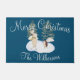 Diese individuelle Weihnachts- oder Urlaubstüre bietet eine warme und gemütliche, schneebedeckte Wasserfarbenwelt im Winter. Zwei niedliche kleine Waldtiere, ein Igel und ein Hase, sind zwischen den Bäumen eiskalt Skaten. Der Hintergrund ist eine reiche königsblaue Farbe.