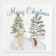 Diese individuelle Weihnachts- oder Feiertagserviette besticht durch eine warme und gemütliche, schneebedeckte Wasserfarbenwelt im Winter. Zwei niedliche kleine Waldtiere, ein Igel und ein Hase, sind zwischen den Bäumen eiskalt Skaten.