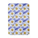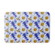 Badematte in einem Aquarellmuster aus weißen Molsen mit goldgelben Mittelpunkten, auf einem Hintergrund in denim blauen Tönen