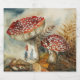 Ein Gnom pinkelt unter einem Pilz