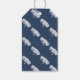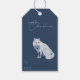 Ein handgemalteter, wasserfarbener Fuchs auf einem eleganten, blau-schieferfarbenen Weihnachtsgeschenk-Tag