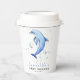 Ein kleines Stück unterwegs mit dieser Babydusche unter dem Thema Meer, mit Baby Delphin in sanft blauen Aquarellen. Wasserfarben-Wasserblasen