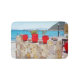 Aquareller Meerblick mit bunten Blume in roten Töpfen und Steinmauer auf einer griechischen Insel