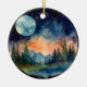 Aquareller Nachthemd im Wald mit Vollmond Keramik Ornament