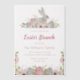elegantes, graues Ostergebäck mit rosa Blumenbrunch Einladung