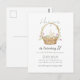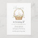 Geburtstags-Postkarteneinladung mit einem Aquarellblasen in einem Korb mit Tulpen und Eiern.