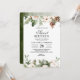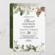 Aquareller Winter Grüne Pine Tree & Weiße Blume Einladung