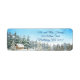 Fügen Sie Ihrem Weihnachtsbrief einen Flair mit diesem Aquarellwinterdesign hinzu. Eine schneebedeckte Hütte liegt inmitten des Waldes zwischen den Bäumen, und es fallen mehr Schneeflocken.