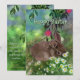 Wenn Sie etwas Originelles und Einzigartiges suchen, ist diese Karte eine Aquarell- und digitale Malmischung, die auf beiden Seiten ein echtes Kaninchen zeigt. Der Hase versteckt sich unter einem Baumzweig in einem schönen Feld von Gänseblümchen bei Sonnenuntergang. Auf der Rückseite ist das gleiche Hase mit einem Huhn. Meine Liebe von Tieren inspirierte es. Genießen Sie einzigartige Kunst.