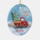 Aquarellfarbe Karierter roter LKW Schnee Frohe Wei Keramik Ornament