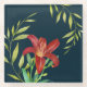 Aquarellfarbe Orange Lily Illustration Dunkelblau Glasuntersetzer