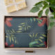 Entworfen auf der Basis meiner Aquarellbilder der Orangenlilie mit ihrer lebhaften orangefarbenen Farbe und feinen Details der Blätter und Blätter, umgeben von hellgrünen Lilienknospen. Der Gegenstand hat dunkeltürkisfarbenen, blauen Hintergrund.