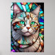 Aquarellfarbene Glaskunstkatze. Das Seitenverhältnis beträgt 2:3. Es wurde für den Druck als 24"x36" konzipiert