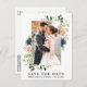 Moderne Aquarellfarbe Eukalyptus Grüne Dusty Blau Rose Rosen Rahmen Save the Date Foto Verlobung Ankündigung Postcard - Goldrahmen