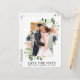 Moderne Aquarellfarbe Eukalyptus Grüne Dusty Blau Rose Rosen Rahmen Save the Date Foto Verlobung Ankündigung Postcard - Goldrahmen