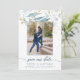 Aquarellfarben Blauer Blume Elegantes Foto Hochzei Save The Date