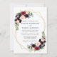 Moderne Elegante, klassische Blau, Watercolor Burgundy Marsala Blau Rosa Blüte mit Grün Hochzeitsempfang. Geometrischer Goldrahmen.