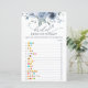 Aquarellfarben Blauer Brautparty Spiel. 1. Stufe 2. Brautparty 3. Blumenmädchen 4. Schneide den Kuchen 5. Essen, trinken Sie Verheiratet 6. Trägerring 7. Honey Moon 8. Heiraten Sie mich? 9. Küss die Brücke 10. Erster Tanz 11. Champagner Toast 12. Bouquet Toss 13. Liebe Sie zum Mond & zurück 14. Junggeselinnen-Abschied 15. Bridezilla. Die passenden Artikel finden Sie in der Elegant Dusty Blue Floral Bouquet Collection. Vollständige Sammlung: https://www.zazzle.com/collections/elegant_dusty_blue_floral_bouquet-119743866163758178