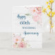 Happy 60. "Hochzeitstag-Karte mit schönen rosa Aquarell-Blume und rustikalen Holzmuster und sentimental Vers.