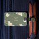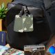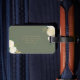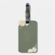 Elegante und weibliche Gepäckmarke mit Aquarellfarben-Blume mit Imitaten Goldfolie und Imitaten goldene Glitzer Akzente mit einer taupe grünen Hintergrundfarbe.