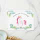 Mit dieser Unicorn Baby Shower Dankeschön und Dankeschön an die Lieben und Freunde. Dieses Design zeichnet sich durch sanfte blaue Blumen mit grünen botanischen Akzenten aus. In der Mitte der Karte steht ein rosa Einhorn mit einer goldenen Krone. Auf der Rückseite der Karte befindet sich ein benutzerdefinierbarer Text, in dem Sie Ihre eigene Nachricht hinterlegen oder die beliebte Typografie behalten können.