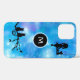 Bild: In der Mitte, in einem schwarzen Kreis, geht der erste Buchstabe deines Namens in weißen Hauptstädte. Vor einem blauen, Aquarellhintergrund stehen zwei Silhouetten: Ein Mädchen und ihr Kätzchen auf einer Schaukel mit einer winzigen Blume zwischen ihnen oben rechts, und ein Katzenpaar, das sich auf einem Baumzweig am unteren links amüsiert.