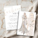 Ein handgemaltes blondes Wasserfarbenmode-Modell mit einem fließenden beigen Gewand auf einer stilvollen Wohltätigkeit Benefizshow
