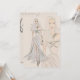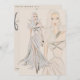 Ein handgemaltes, blondes Wasserfarbenmode-Modell mit einem fließenden beigen Gewand auf einer stilvollen Wohltätigkeit-Benefizshow-Einladung in neutraler Creme