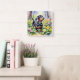 Aquarellfarben Dackel Wurst Hund Holz Primrose Quadratische Wanduhr