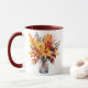 Die Tasse des Kaffees mit einer Aquarell-Abbildung eines farbenfrohen Bouquets von Herbstfloralen Set in einer Vase im Stil eines Glaskeramikgefäßes. Zusätzliche Felgen- und Grifffarben und -größen sind verfügbar.