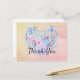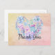 Die wunderschöne Aquarellbild zeigt einen herzförmigen Kranz, der aus verschiedenen Sukkulenten und Kakteen in Blues, Purpur, Pinks und Grüntönen auf abstraktem Hintergrund besteht. Anpassbarer "Danke"-Text. Design ist für Hochzeiten und andere wichtige Ereignisse geeignet.