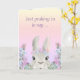 Diese wertvolle Osterkarte wird für jeden, der sie bekommt, ein Lieblingsgepäck sein! Die Vorderseite hat ein wunderschön illustriertes Hasen mit einer Blumengarage um ihren Kopf. Sie führt durch einen wunderschönen Blumengarten mit rosa, lila und blauen Blumen und moosgrünen Botanikalen. Der Hintergrund ist ein ombre polka dot pattern, das in den Farbtönen Gelb, Orange Sherbert, Rosa und Lavendel gehalten ist. Im Text steht: "Nur mit einem Klick.." Die Innenseite der Karte hat zwei weitere bezaubernde Bündinnen, die Blume auf ihrem Kopf tragen und in etwa mehr Blume herankommen. Hintergrund ist das allgegenwärtige Muster, und oben steht: "Hoffnung, dass du einen EGGstra besonderen Ostertag hast!" So eine lustige, farbenfrohe Osterkarte, die sich perfekt für Kinder und Erwachsene eignet.