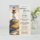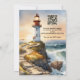 Brautdusche an der Küste mit Aquarellmalerei eines Leuchtturms bei Sonnenuntergang. Auf der Rückseite ist eine (optionale) einfach zu anpassende QR-Code-Vorlage. Schöne für eine geplante Hochzeit in Urlaubsort, Hochzeit auf dem Wasser oder Hochzeit am Strand.