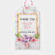 Eine Dankeschön-Hochzeitskarte mit modernem Design - eine weiße Marmortextur aus Imitat bildet den Hintergrund. Oben platziert ist ein Rahmen mit einem goldenen Rahmen für Imitate. Große rosa und lila magnolische Blume mit grünen Akzenten zieren das Design.