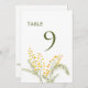 Aquarellfarben Mimosa Blume Hochzeit Tischnummer